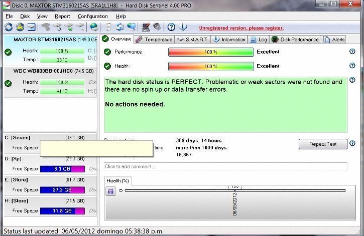 http://www.hdsentinel.com/hard_disk_sentinel_trial.php es trial instalelo y en 15 minutos le dice como esta su disco tome una ss (screen shot) captura de pantalla le debe mostrar algo asi