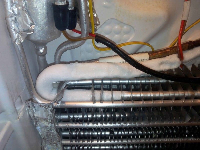 Saludos! La falla que presenta es que el lado del congelador no baja de +5ºC, está como loco. Inicialmente ambos lados fallaban, pero se hizo la prueba del autodiagnostico (Power Freeze + Power cool por 8 seg) y en los displays 7 segmentos marcó el sensor de descongelamiento del evaporador malo. Se le cambió y se solucionó la falla del refrigerador pero ahora queda pendiente la del congelador. El diagnostico no indica fallas, los sensores se cambiaron ambos (Sensor de temp interna y Sensor de descongelamiento del evaporador) En resumen se hizo lo siguiente: Lado de congelador * Se cambiaron ambos sensores * Se lubrico el motor del ventilador y se probo. Arranca bien a los 8 seg aprox de cerrada la puerta * Se midieron ambas resistencias (Descongelamiento y Drenaje) Marcan continuidad en el multimetro una 62 ohm y la otra 323. El paralelo de ambas cuando están conectadas 52ohm aprox. * Se cambió el sensor de temp ambiente ya que los valores de resistencia no concordaba con las tablas de temp según la temp ambiente. Luego de cambiarse por uno nuevo se verificó el ventilador del condensador+compresor y funciona aparentemente normal. * Se sacó la tarjeta y se probó por separado el relé del compresor asi como las etapas de filtrado de los sensores (C702, C703 y C704 y resistores cercanos) sin novedad. * Se midió la corriente del compresor para descartar fallos de sobrecorriente por problemas de gas. Han venido ya 4 técnicos, el primero dijo que no queria arriesgarse con una nevera electrónica, el segundo cobró una barbaridad, el tercero pues no nos convenció y el 4to fue quien nos orientó un poco y le hizo mantenimiento en agosto. La causa de la falla a mi parecer los apagones (ya diarios) que estamos teniendo en Venezuela, aunque ya se veia por presentar la falla antes de eso. Es la segunda vez que se daña en menos de un año. La primera vez se dañó en agosto y le cambiamos la resistencia y sensor de descongelamiento del lado derecho (refrigerador) funcionando perfecto hasta finales de marzo. Algo que si me pareció raro, es que en el evaporador interno del congelador se congela, el tramo cercano al sensor. Adjunto una imagén. Mediciones de corriente de marcha en el compresor Disculpen lo extenso, Feliz Día y que Dios los Bendiga!